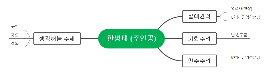 그래서 아래 그림과 같이 엄석태와, 5학년 담임선생님은 '절대권력'을 나타내는 것 같다.